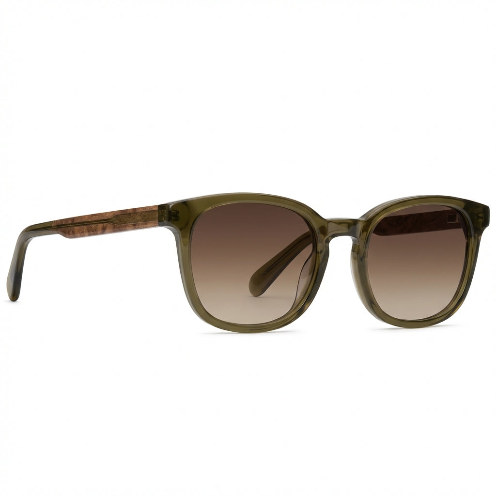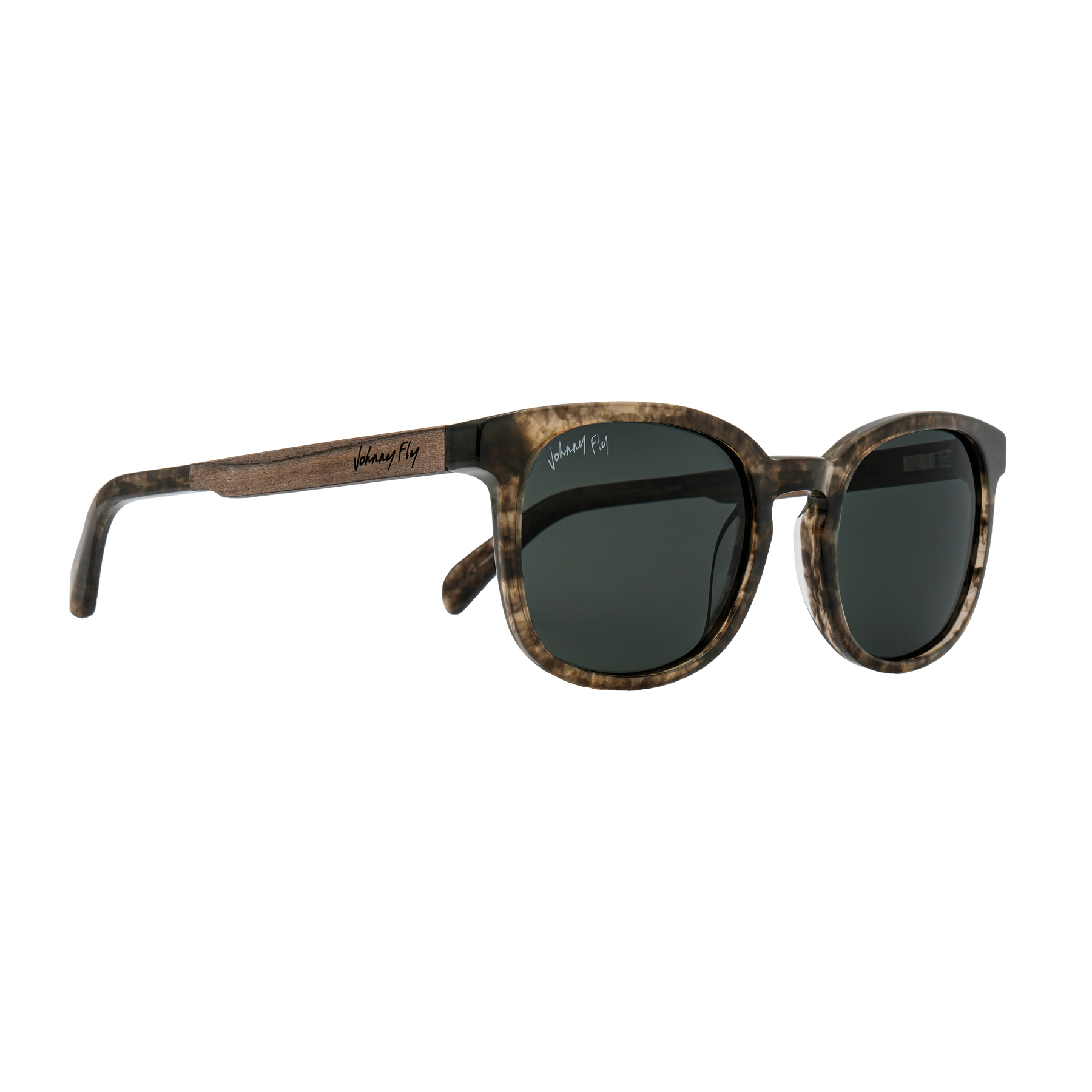 Soar to new heights in this frame. This Johnny Fly classic embodies timeless minimal design while merging them with the iconic acetate frames, wooden arms, spring hinges, and nylon polarized lensing that make them Johnny Fly.