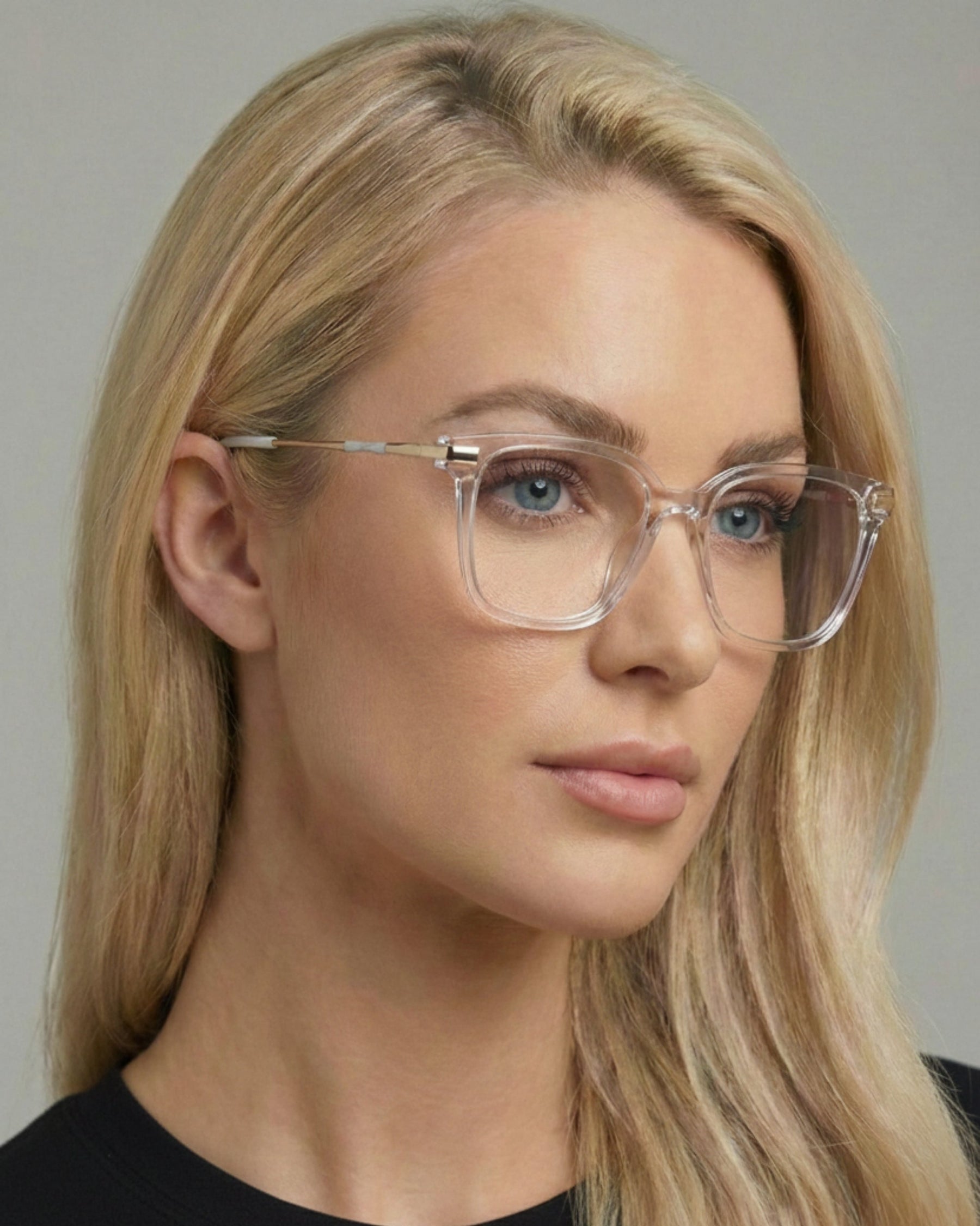 Yara Blue Light Glasses feature a unisex square frame with a charming twist accent in the frame's color. These glasses strike the perfect balance between fashion and functionality. The blend of gold metal arms and resilient temple tips harmonizes with the frame's front, while the flexible hinges accommodate wider faces. Available in black, torte, transparent bubblegum pink, and clear, Yara offers both style and comfort for everyday wear.