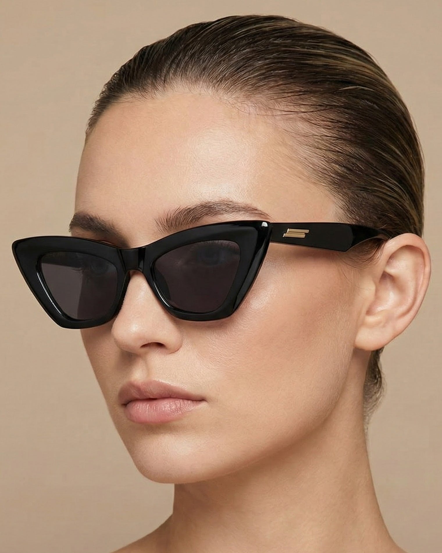 Siena sunglasses feature a bold cat-eye shape with sculpted curves and sharp corners that instantly elevate any look. The wide temples are finished with sleek gold accents for a glam, standout finish.